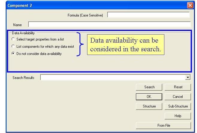 In addition to the search options available for Component 1, the availability of experimental data can be used to restrict the 2nd selection.