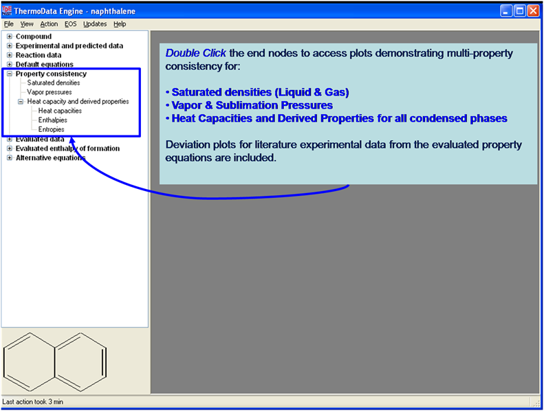 "Property Consistency" provides access to plots demonstrating enforcement of thermodynamic consistency between several properties evaluated byTDE.
