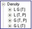 - L (T, P): The property of the LIQUID as a function of temperature T and pressure P. (In this case, the density of the single-phase liquid.)