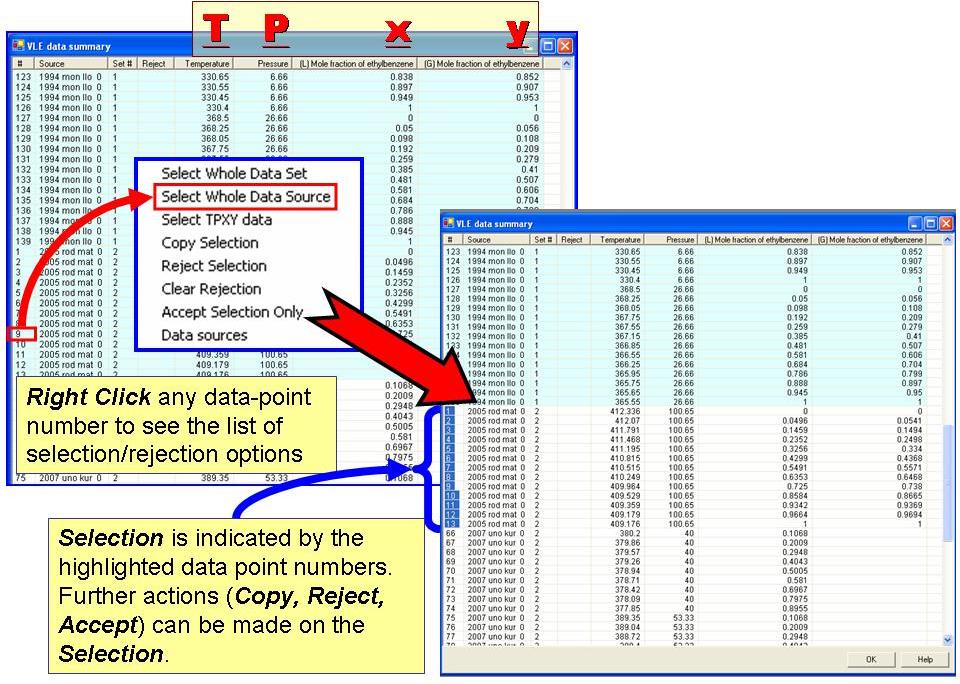 VLE (and LLE) Data Summary Right-Click Options: Select Whole Data Source