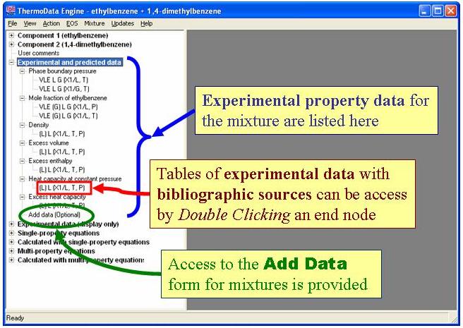 Experimental property data for the binary mixture can be explored.
