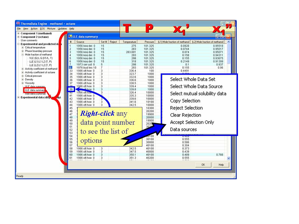 Liquid-Liquid Equilibrium (LLE) Data Summary: Selection/Rejection Options