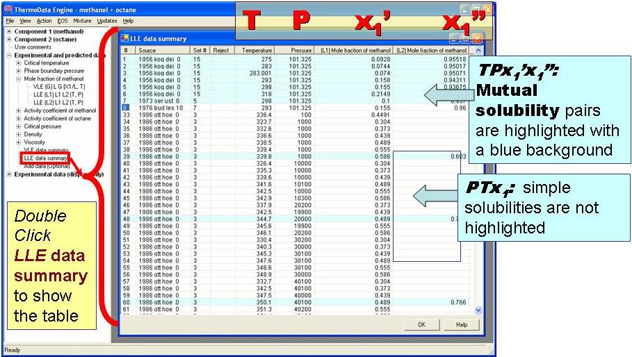 Identify Mutual Solubility data sets: Mutual Solubility data are highlighted in the table for easy identification (See Below).