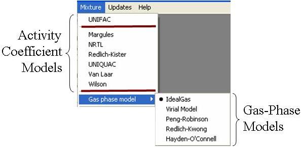 Multiple Activity Coefficient Models can be selected at once, but only one Gas-Phase Model.