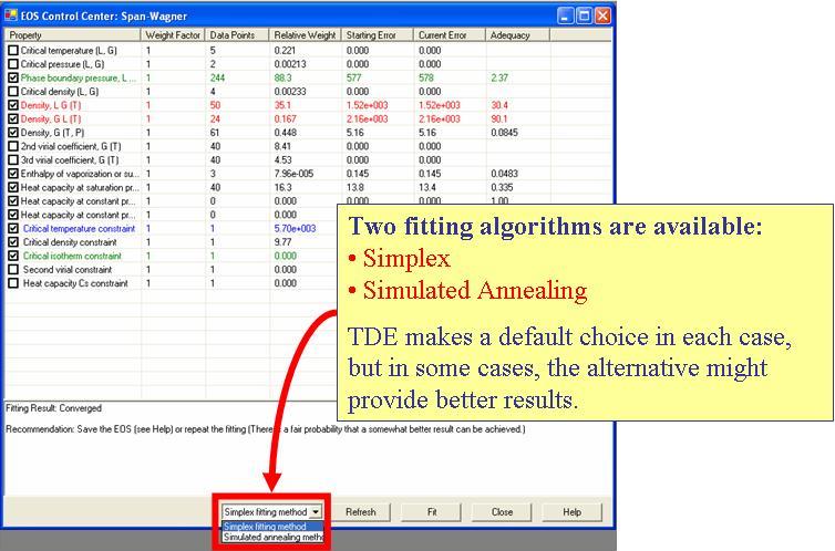 A user can choose beween two fitting methods: simplex (faster) and simulated annealing (slower, but sometimes better).